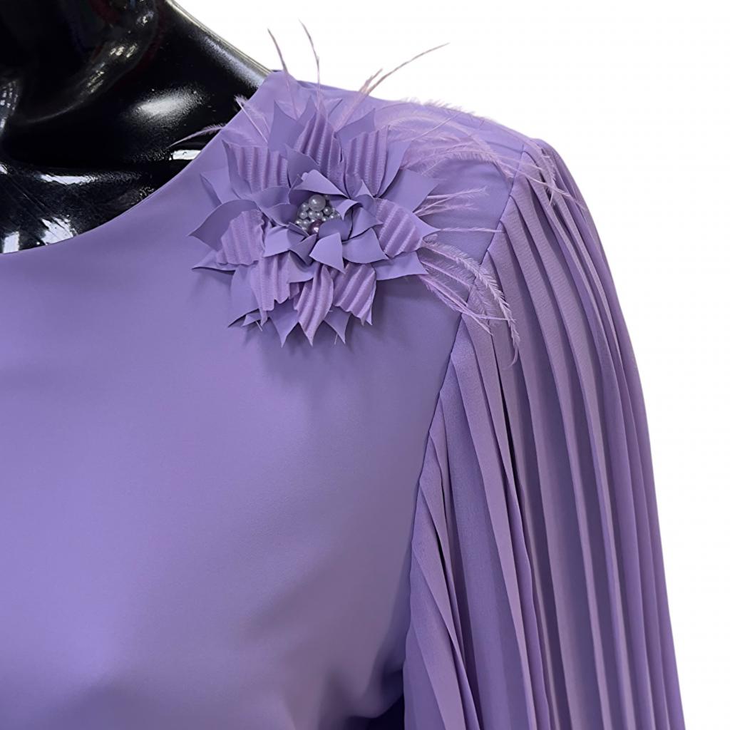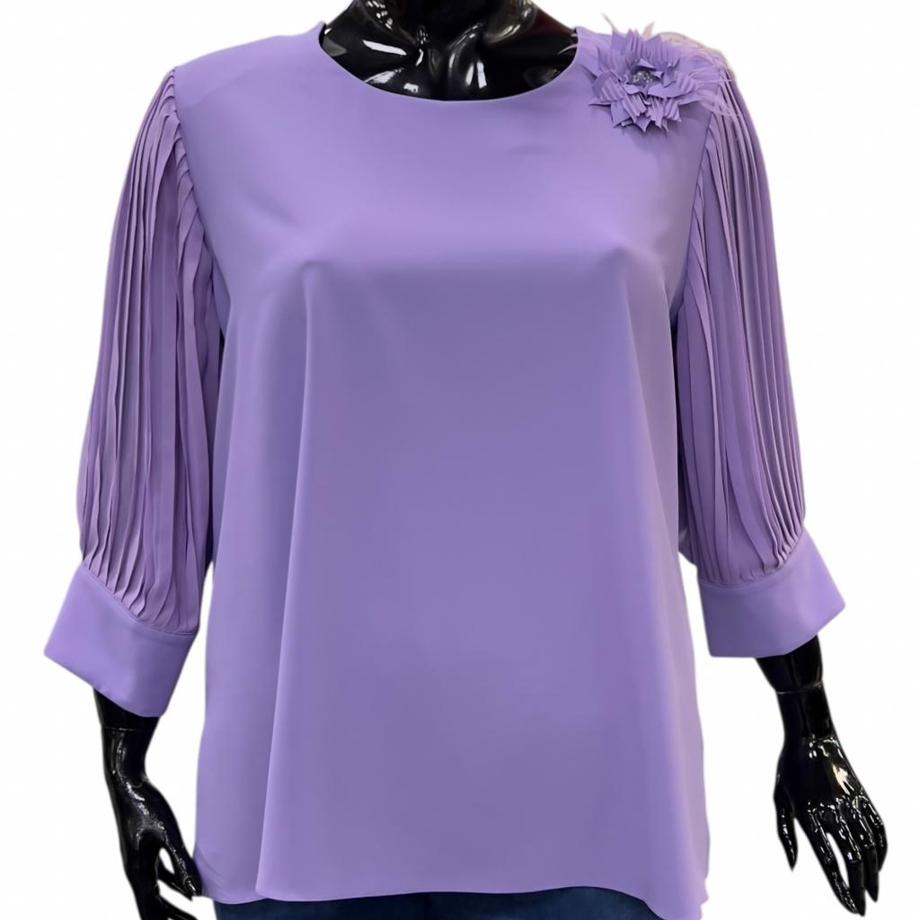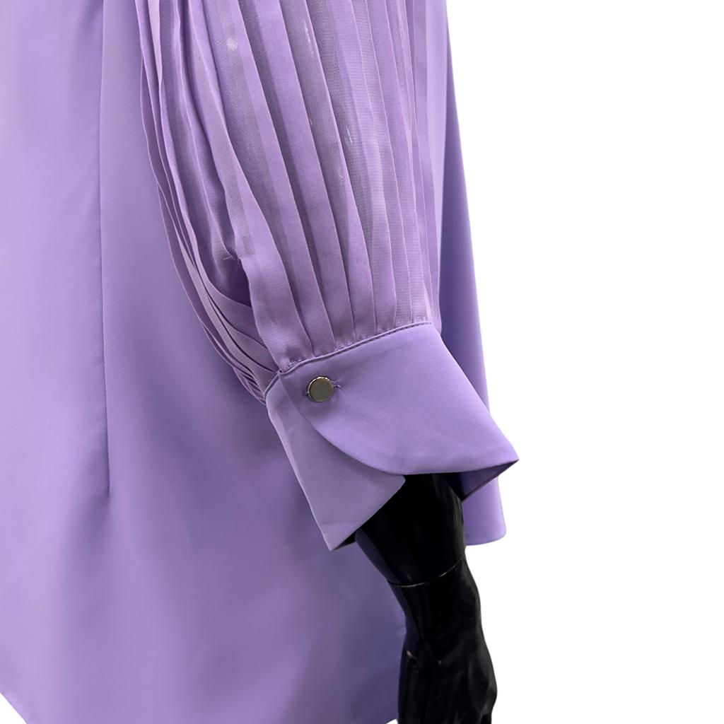 Утончённая блузка из невесомого шифона, которая станет истинным украшением вашего гардероба. Лавандовый цвет гармонично сочетается с изящными рукавами плиссе, создающими эффект лёгкости и воздушности.
