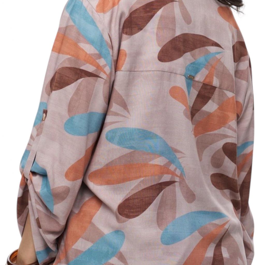 Воздушная и стильная блуза с живописным принтом — идеальный выбор для создания эффектных и комфортных образов. Благодаря свойствам материала изделие обладает приятной шелковистой фактурой и отлично пропускает воздух.