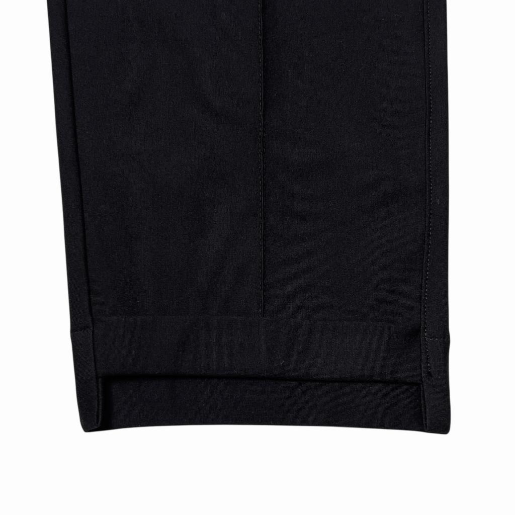 Имитация стрелок в виде декоративной отстрочки по центру брючин создает деловой акцент и делает силуэт более стройным. Классический черный цвет делает брюки универсальными и подходящими для любого случая.