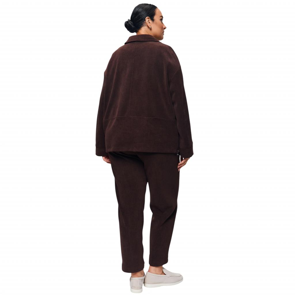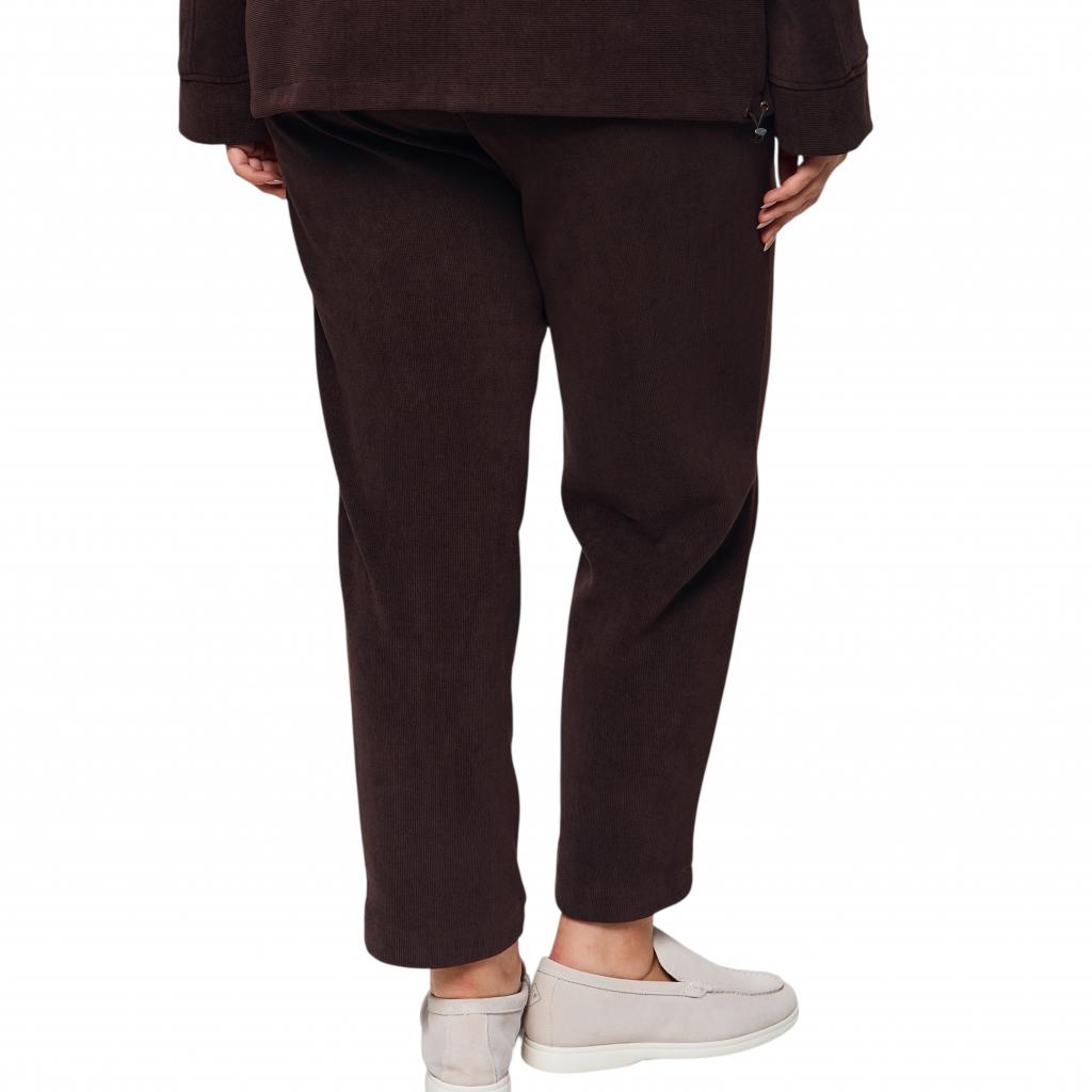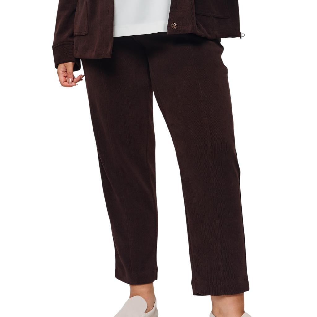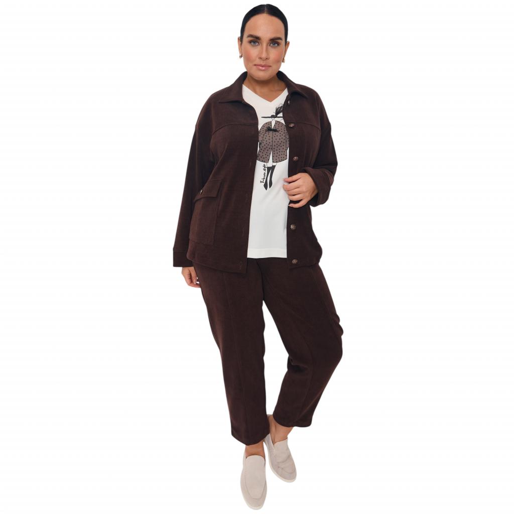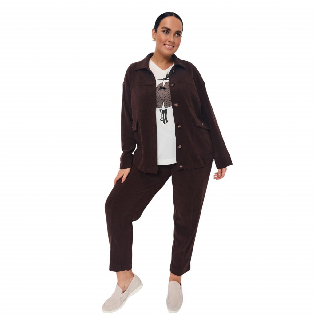 Женские брюки шоколадного цвета из микровельвета на трикотажной основе станут прекрасным выбором для создания стильного и комфортного образа. Шоколадный цвет придаёт брюкам вайб оригинальности, а пояс на круговой резинке и имитация гульфика обеспечивают удобство и тепло. Брюки выполнены из очень нежной и приятной для тела ткани, которая обеспечивает комфорт, ощущение уюта и хорошо садится по фигуре. Особенностью брюк являются большие накладные карманы с листочкой, которые добавляют изюминку и функциональность образу.