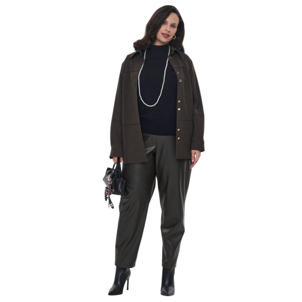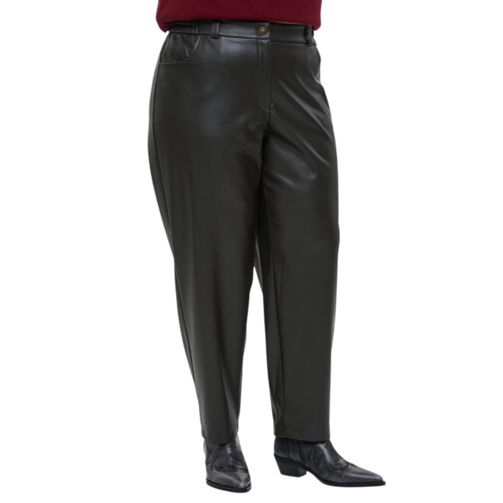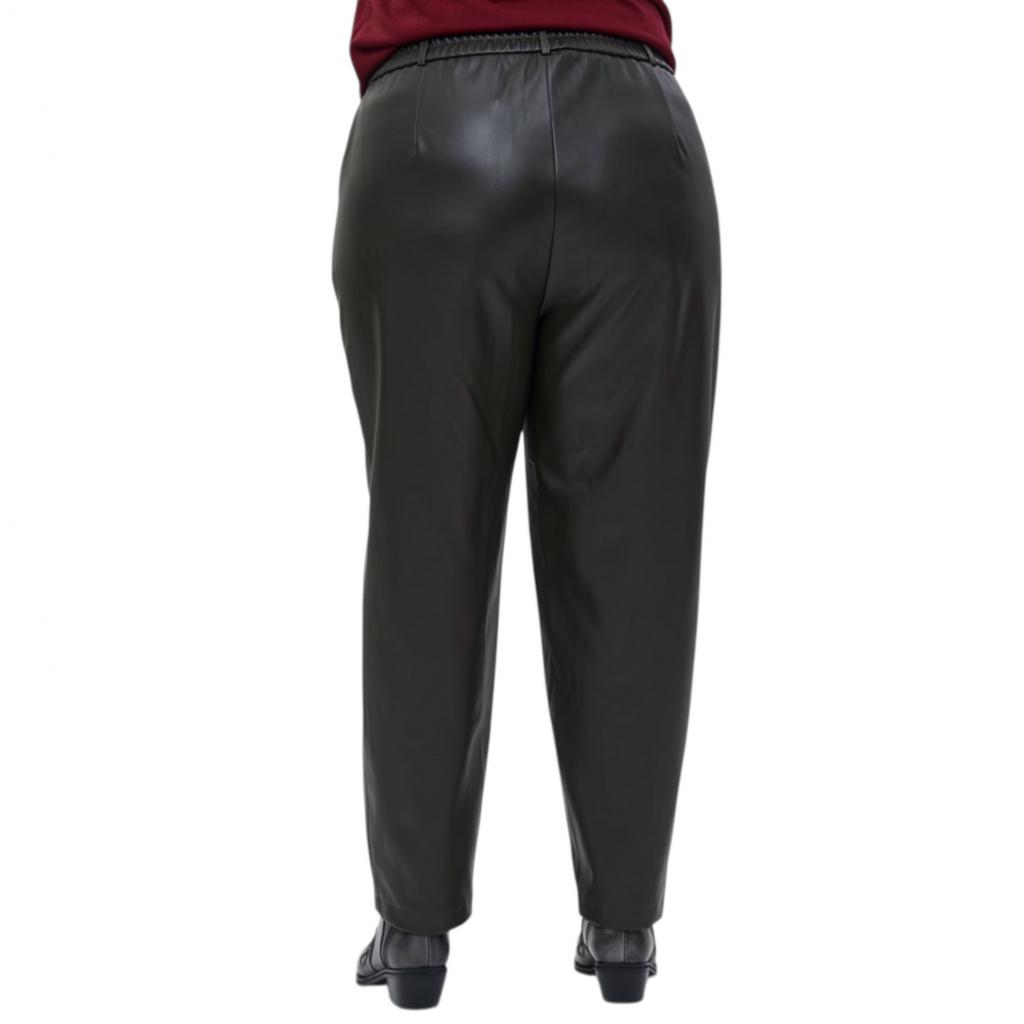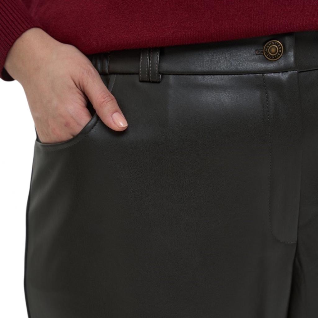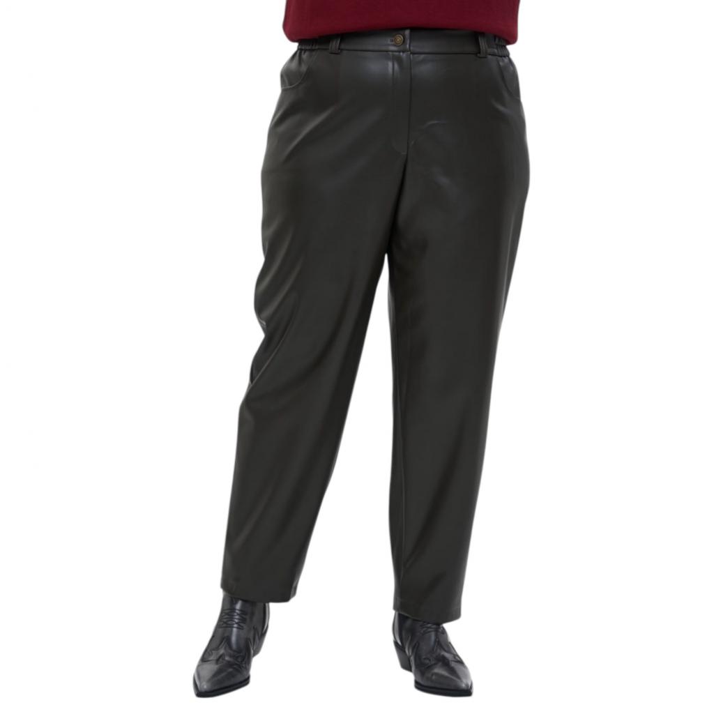 Брюки из мягкой матовой эко кожи, с приятной “замшевой” фактурой внутри. Своим кроем брюки отсылают к популярной и удобной модели “бананы”. Они свободны, заужены книзу, подходят для любого типа фигуры и создают красивый женственный силуэт. Брюки застёгиваются на пуговицу и молнию. На поясе — шлёвки для ремня. Есть карманы.