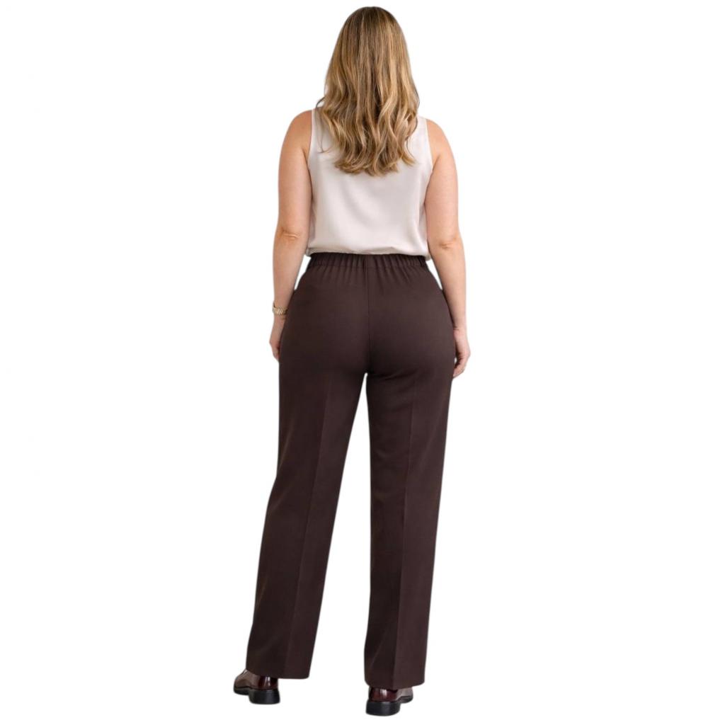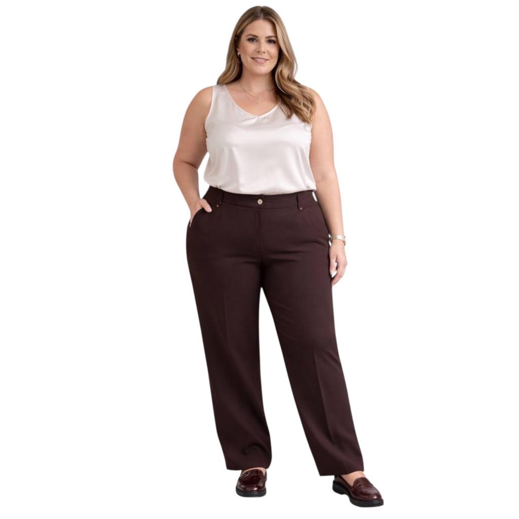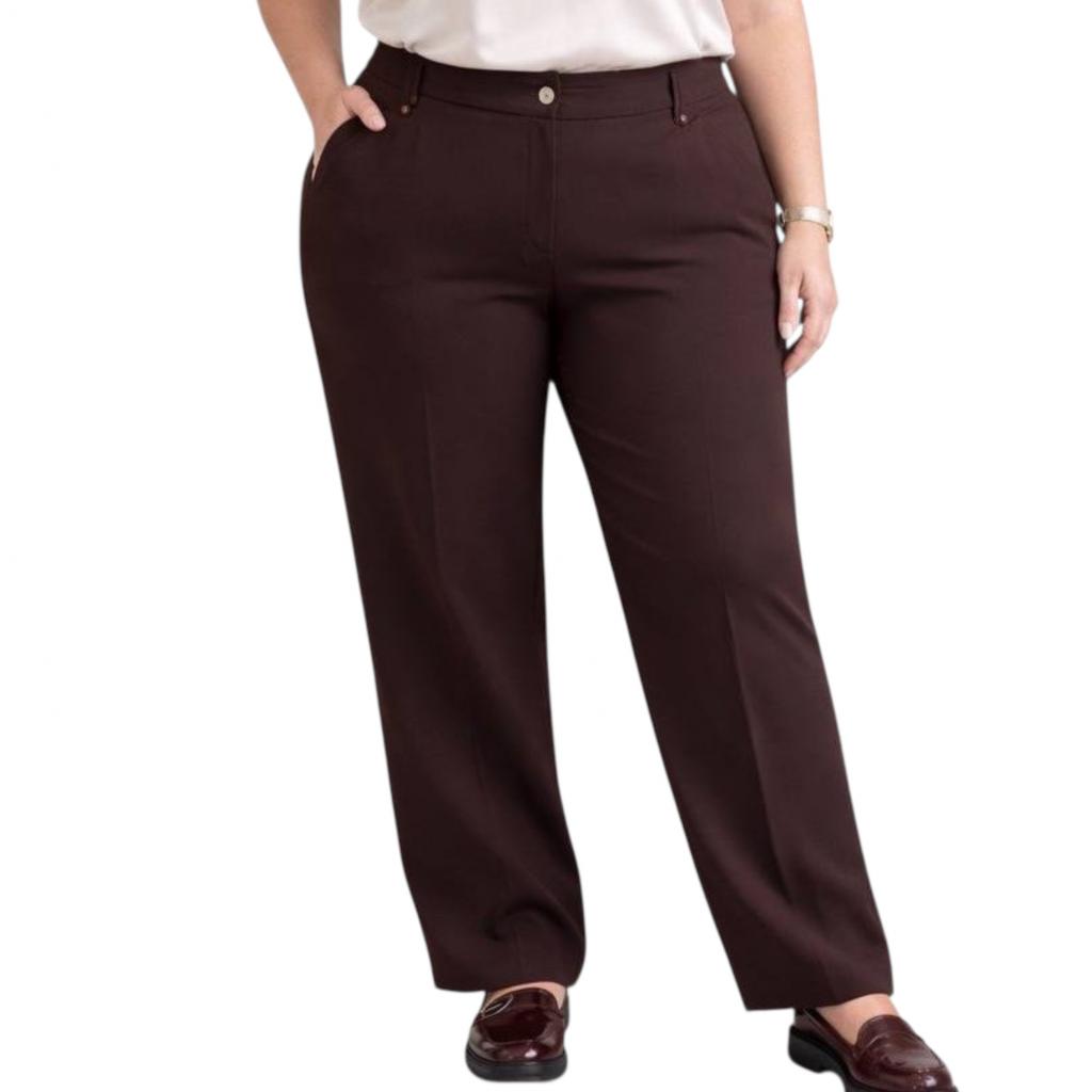 Стильные прямые брюки полной длины в насыщенном тёмно-шоколадном оттенке — маст-хэв сезона 2026. Модель объединяет современный крой, функциональные детали и акцентные элементы, превращая базовый предмет гардероба в выразительный компонент образа.