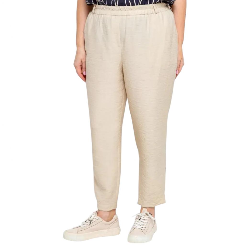 Стильные и практичные свободные летние брюки в бежевом цвете. Они идеально подойдут для любителей активного образа жизни и современных трендов. Пояс на резинке обеспечивает удобную посадку на талии. Функциональные карманы по бокам служат для хранения мелочей и придают модели законченный вид.