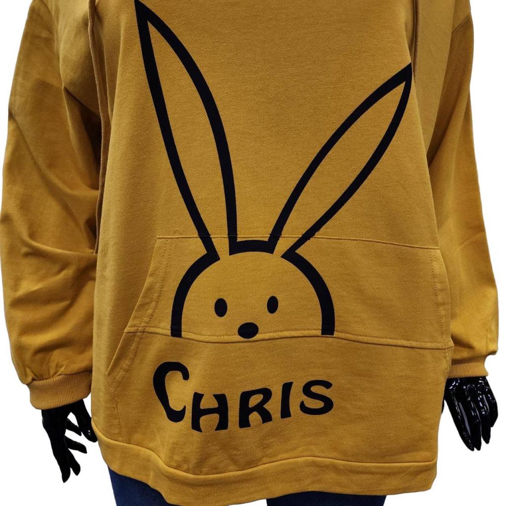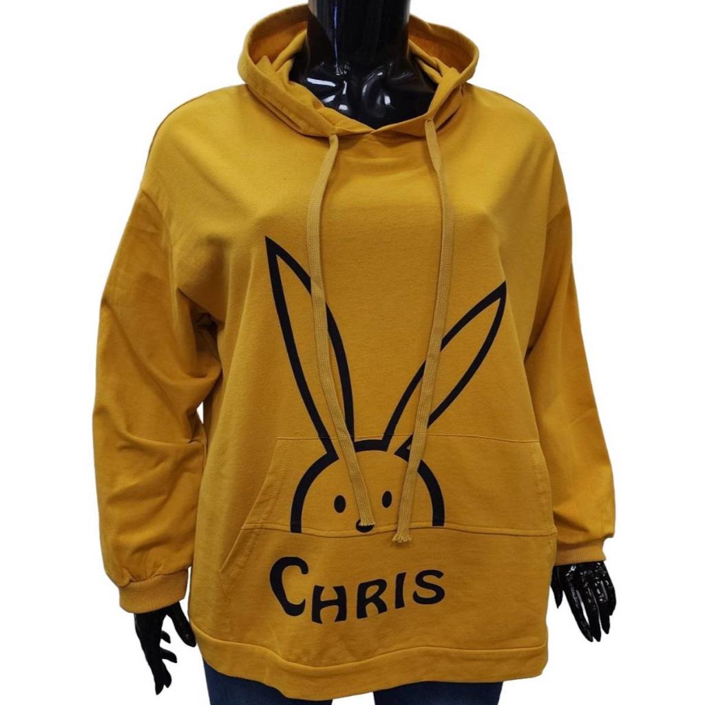 Это худи - идеальный выбор для осенних дней. Ярко горчичный цвет и карманы "кенгуру"создают стильный вид, а капюшон на кулиске позволит регулировать объем по голове. Втачной рукав полной длины с манжетой на резинке обеспечивает комфортную посадку на руке. Принт с кроликом а-ля Playboy и надписью “Chris” украшает переднюю часть худи, добавляя уникальности и шарма. Модель длиной до сгиба бедра отлично сидит на фигуре, не сковывая движений. Отличный выбор для создания ярких и запоминающихся образов.