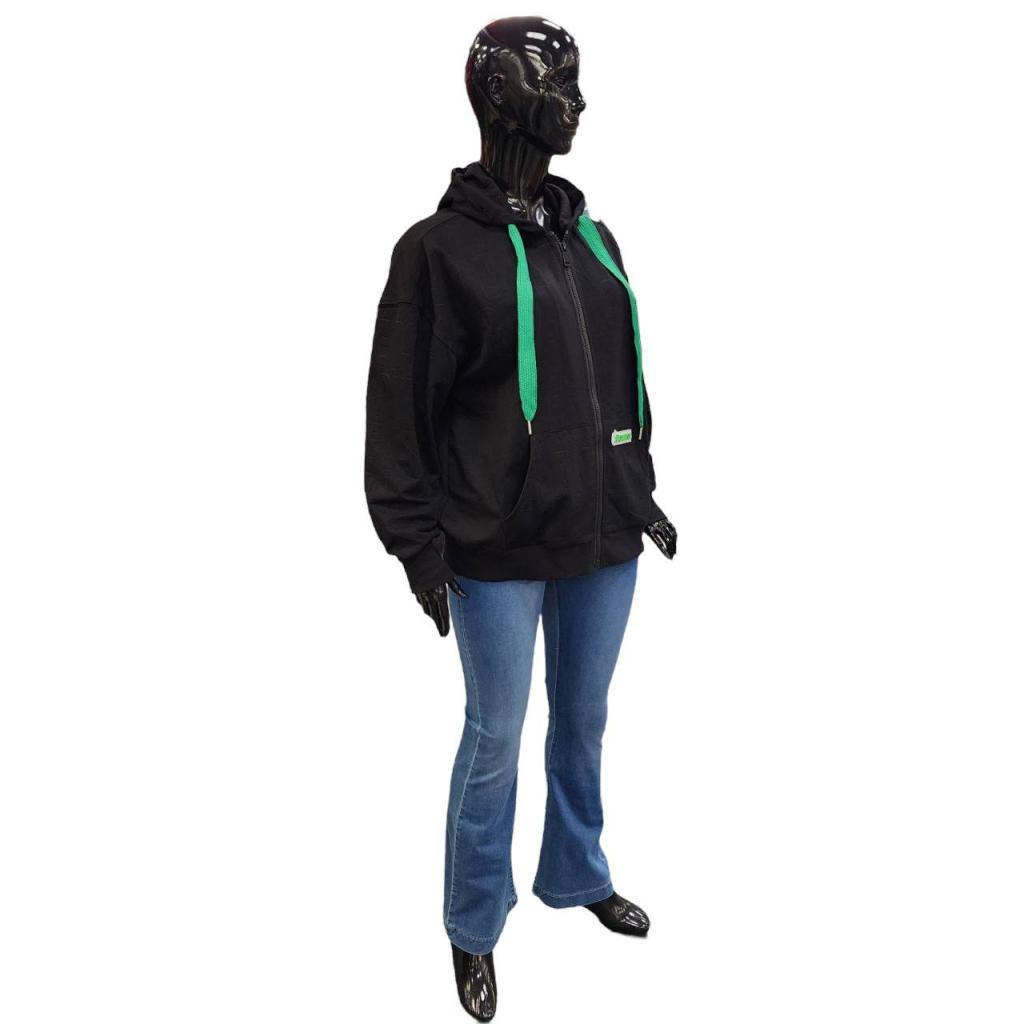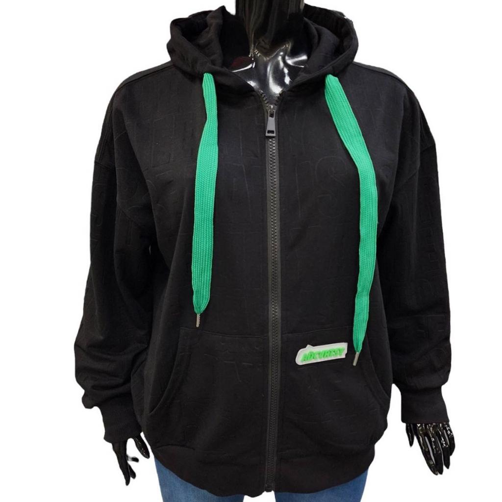 Крутейшая современная толстовка для леди, которая любит потемнее. Капюшон не просто висит и ничего не делает, он радует глаз своей декоративной, разноцветной нашивкой, прошито все великолепно и без претензий.