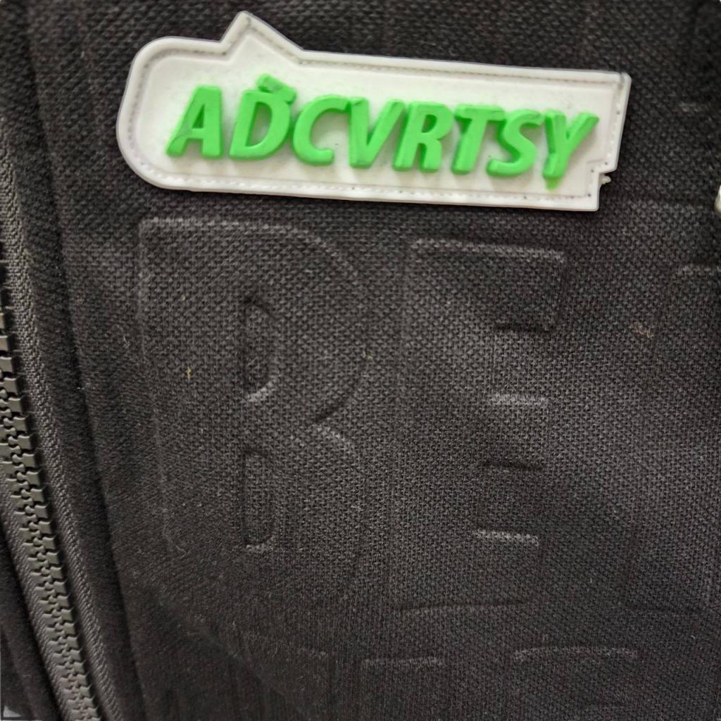 Вся толстовка покрыта слегка выпуклыми буквочками, что тоже очень доставляет и поднимает настроение, на одном из двух накладных карманах мы можем заметить прорезиненный патч, который тоже не просто так тут пришит абы что, яркие буквочки снова поднимают настроение!