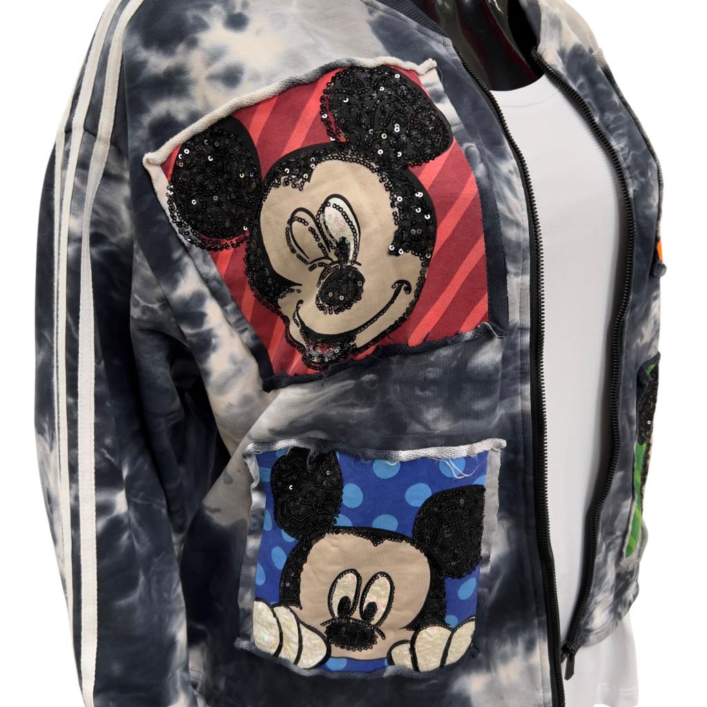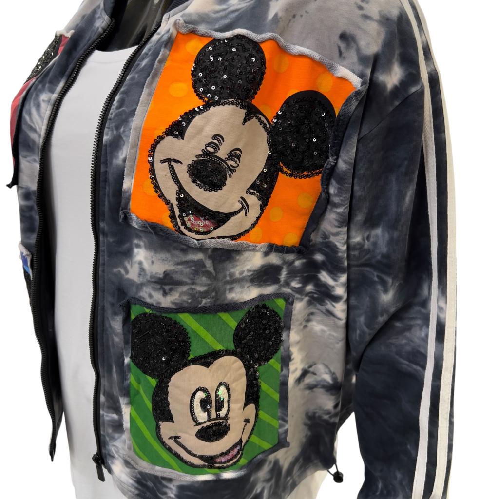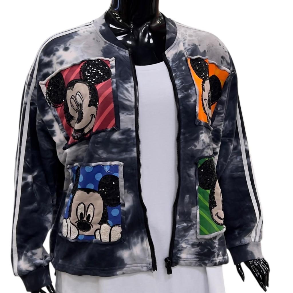 Стильный и оригинальный бомбер станет настоящим украшением вашего гардероба. Эта модель сочетает в себе современный дизайн и очаровательные детали, которые покорят сердца как юных модниц, так и взрослых поклонниц Disney. Дизайн бомбера привлекает внимание разноцветными принтами с любимым персонажем — Микки Маусом. Изображения мультипликационного героя эффектно дополнены блестящими пайетками, создающими праздничное настроение.
