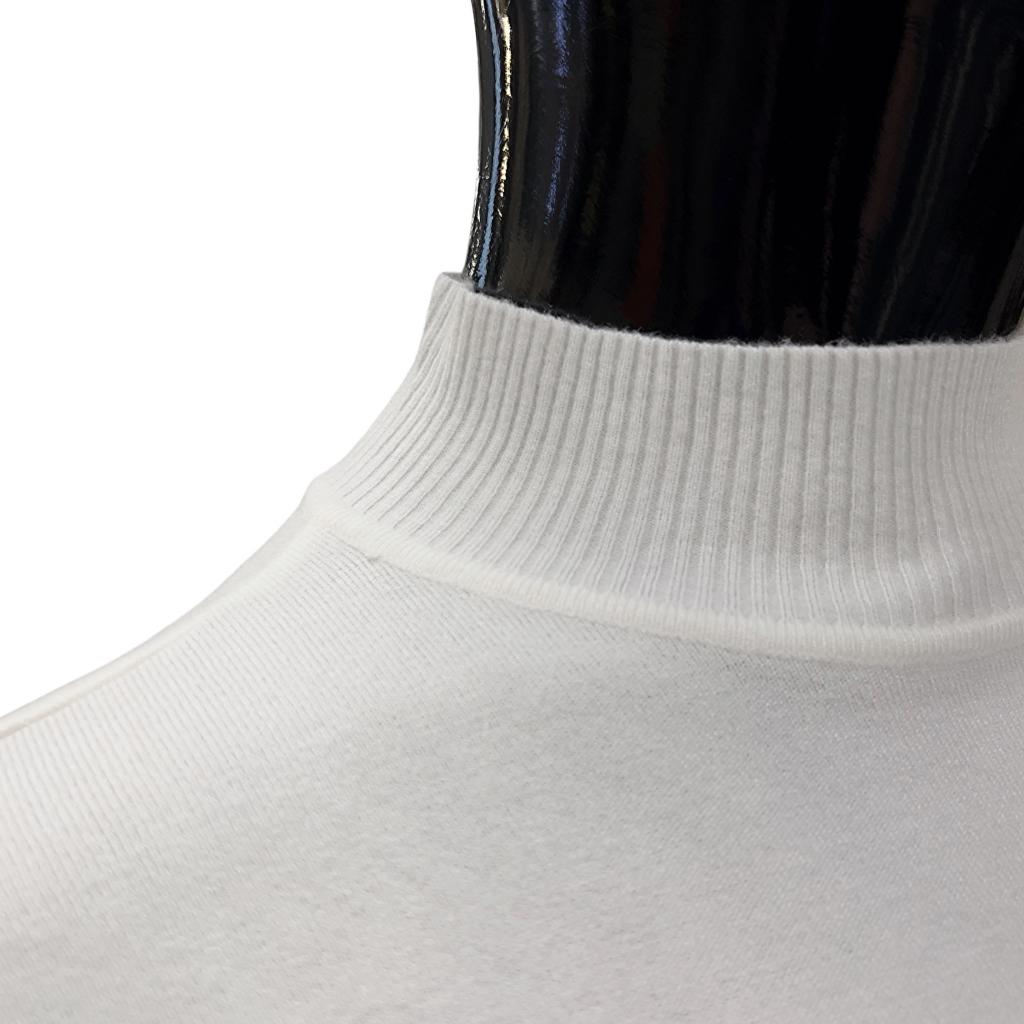 Однотонная белая водолазка с воротником "стойка" и длинным рукавом — это незаменимая вещь в тёплом гардеробе любой модницы. Они хороши сами по себе и прекрасно сочетаются с пиджаками, кожаными куртками, вещами строго делового или полуспортивного стиля. Их можно носить каждый день, однако, если добавить украшения, такие вещи будут уместны и на свидании. Одним словом, это разностороннее изделие.