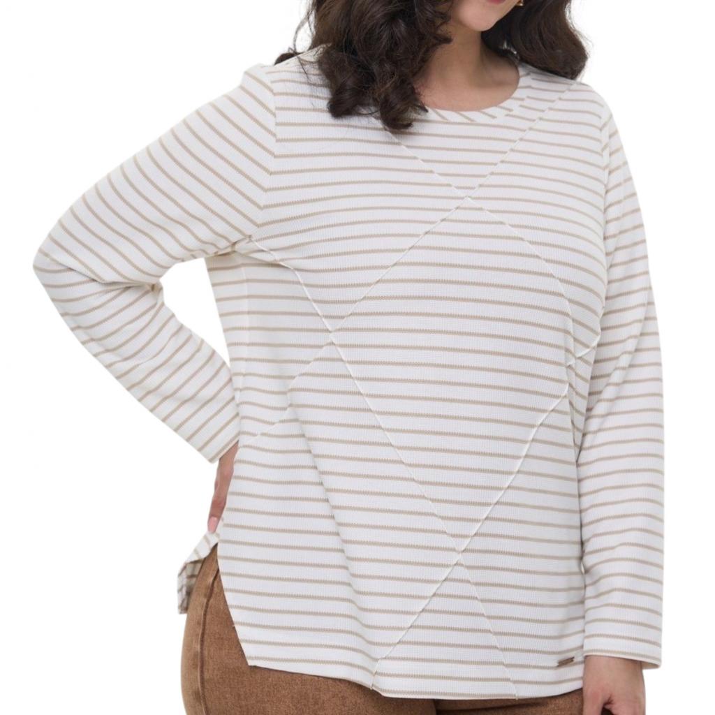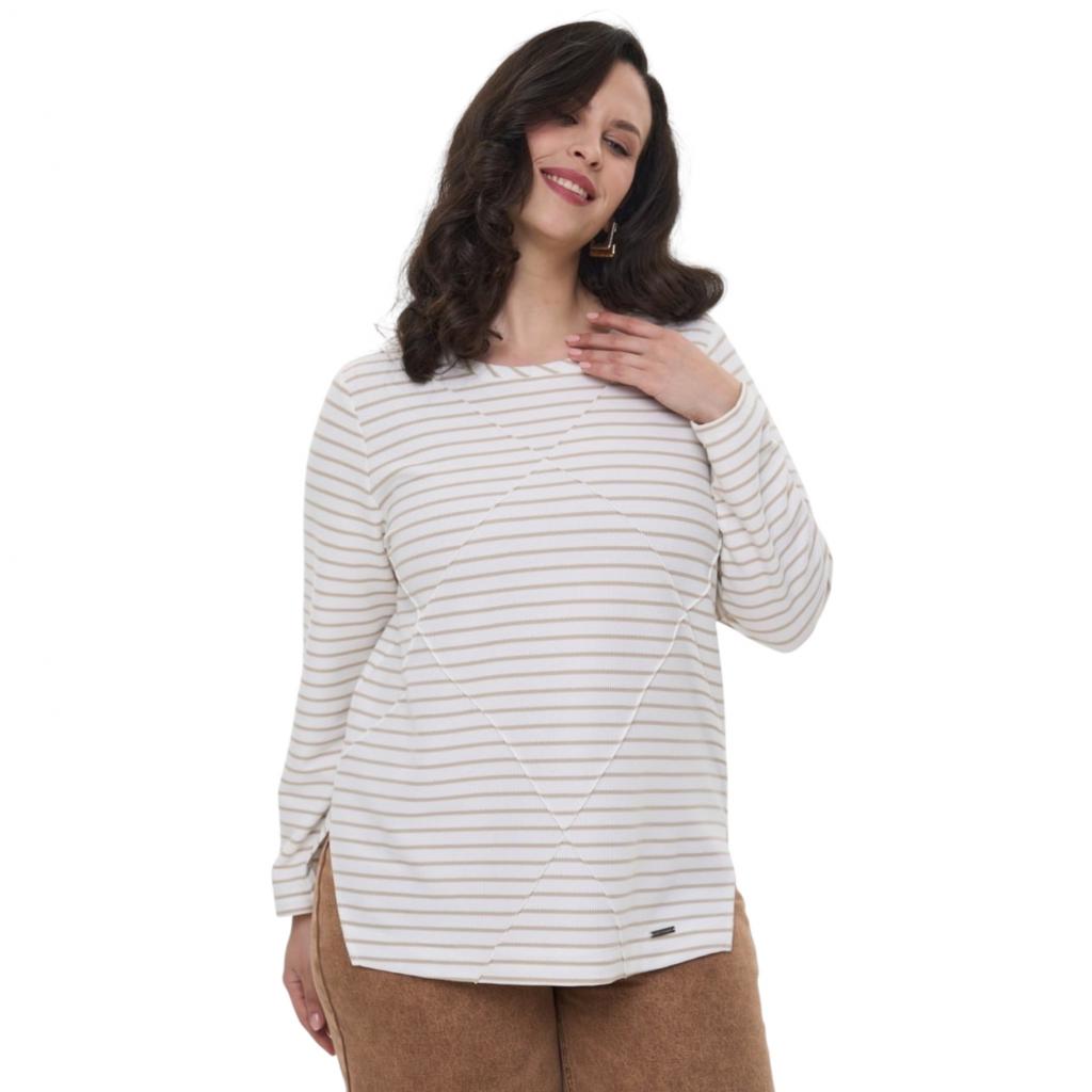 Джемпер в полоску из фактурного трикотажа: стиль и комфорт в каждой детали. Джемпер в полоску – это вещь вне времени, которая всегда остается в тренде. Он идеально подходит для создания различных образов. Эффектные защипы по переду придают ритма полоске и делает джемпер эксклюзивным. Джемпер станет ярким акцентом при создании неформальных городских образов и элегантно выглядеть в офисе. Прямой силуэт, длинный втачной рукав, фигурные разрезы в боковых швах, округлая горловина с планкой. Актуальная расцветка, которая освежит любой типаж женщины.