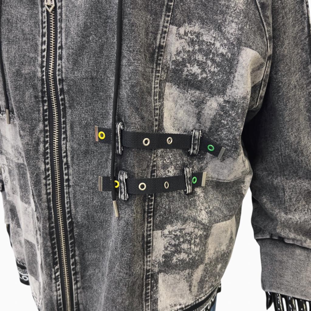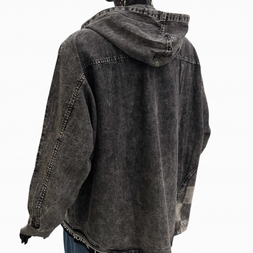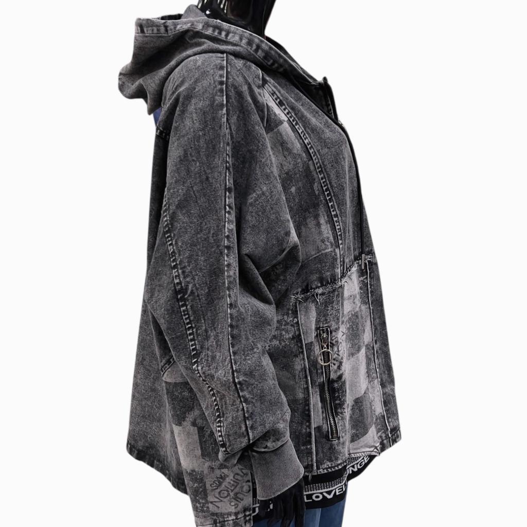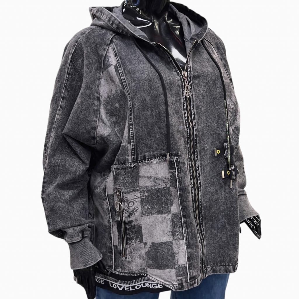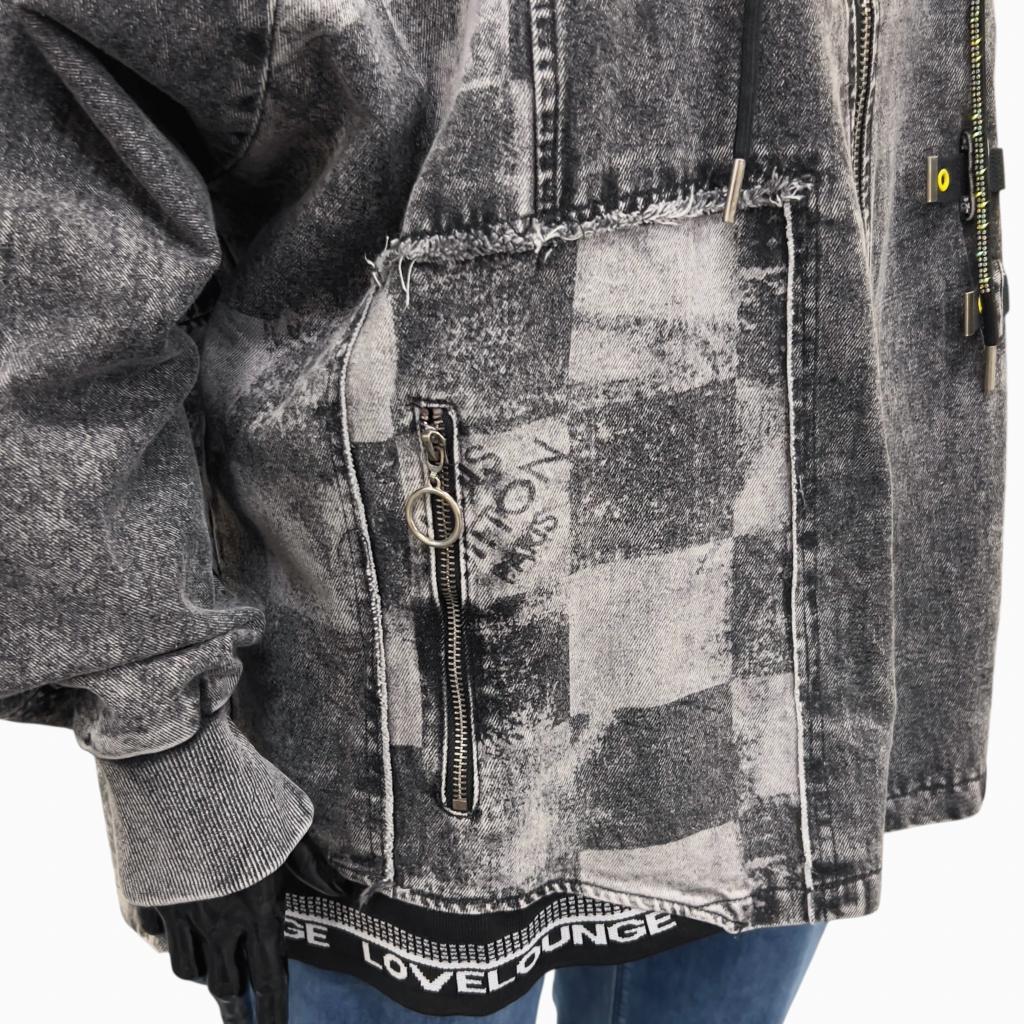 Серая джинсовая куртка прямого силуэта - идеальный выбор для любителей комфорта и стиля. Ее длина до сгиба бедра позволяет носить ее с различными типами низа. Рукав реглан полной длины с манжетами на резинке и капюшон придают куртке современный вид. Застежка на серебристую молнию, большой накладной карман с молнией, патчи на левой половинке полочки и трикотажная резинка по низу полочки завершают образ, делая его неповторимым.