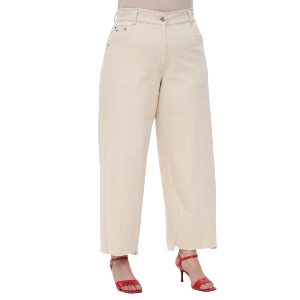 • Силуэт: Свободный прямой крой с широкими штанинами, который мягко обрисовывает бедра.