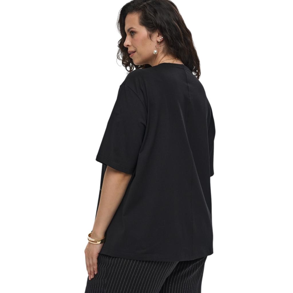 Универсальная базовая футболка в глубоком черном цвете — незаменимый элемент гардероба для создания комфортных повседневных образов. Модель выполнена из мягкого трикотажного полотна, в составе которого хлопок и эластан. Благодаря такому сочетанию компонентов изделие отлично пропускает воздух, приятно к телу и сохраняет форму после многочисленных стирок.