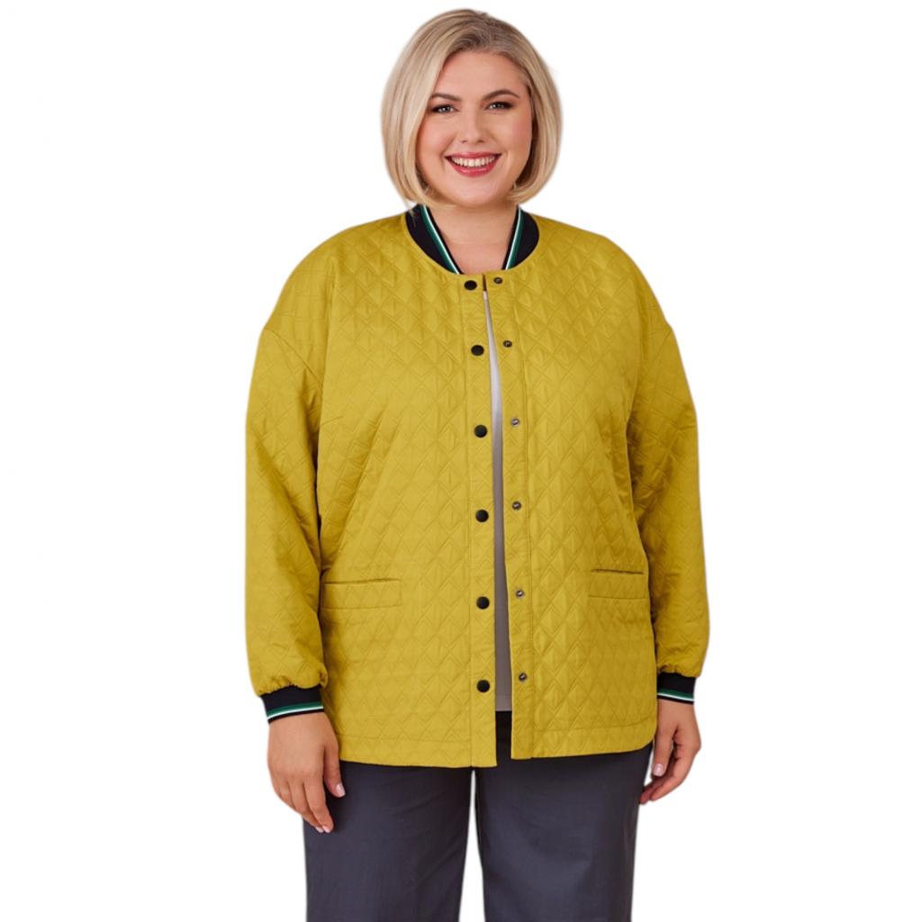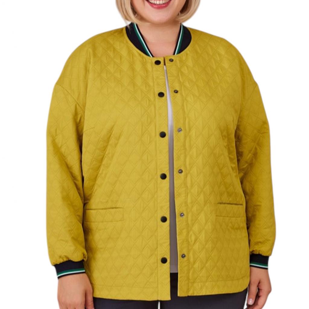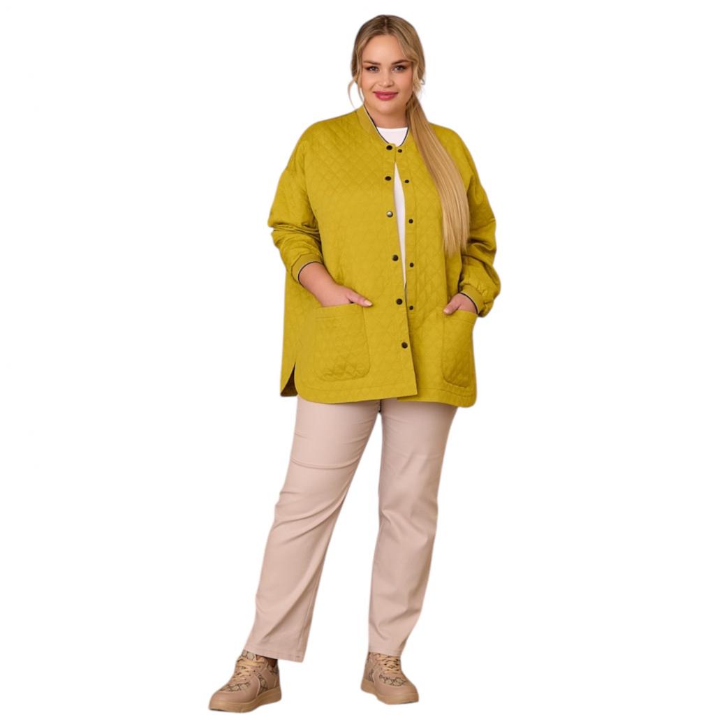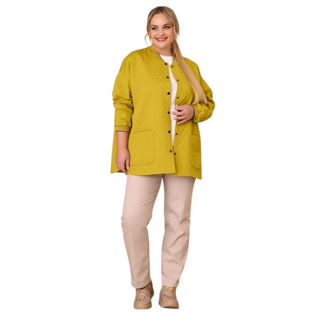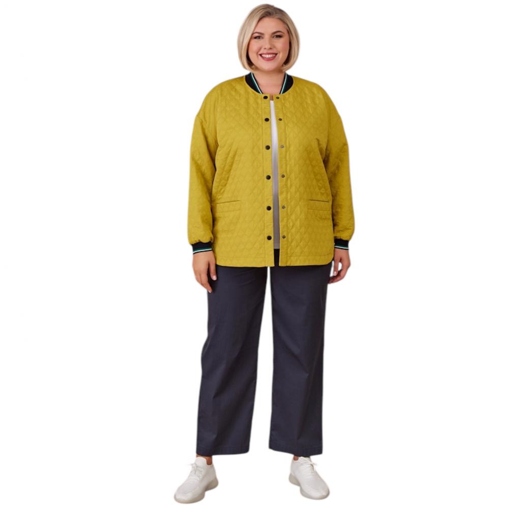 Стеганый жакет горчичного цвета — отличный вариант для прохладного летнего вечера или весны. Прямой силуэт, фигурный низ, застёжка на пуговицы, два больших накладных кармана, длинный рукав и манжеты с резинкой на горловине и рукавах делают этот жакет стильным и комфортным.