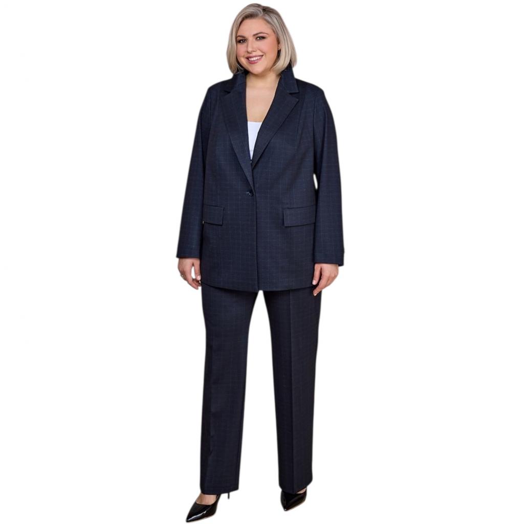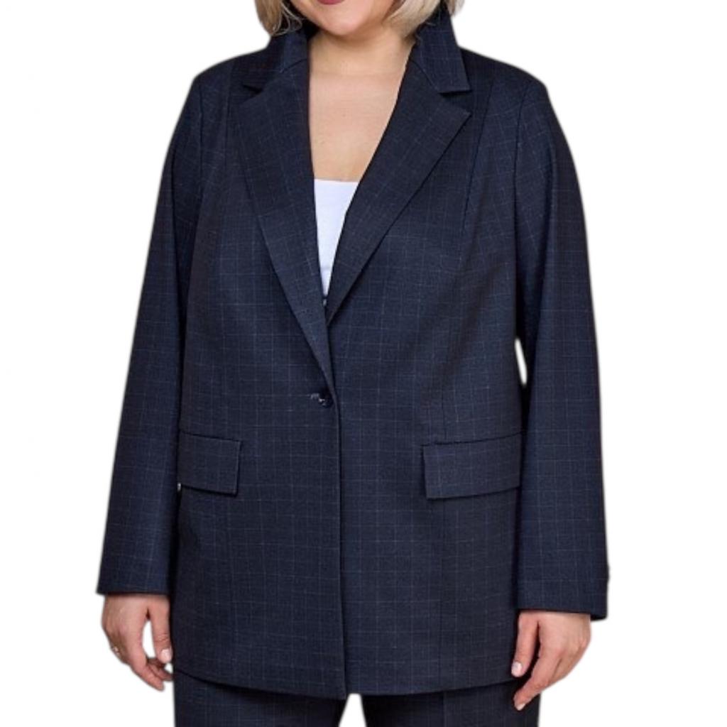 Тёмно-синий клетчатый женский жакет с двумя функциональными карманами и застежкой на пуговицу — это стильный и практичный элемент гардероба. Жакет выполнен из качественной ткани, которая обеспечивает комфорт и долговечность.