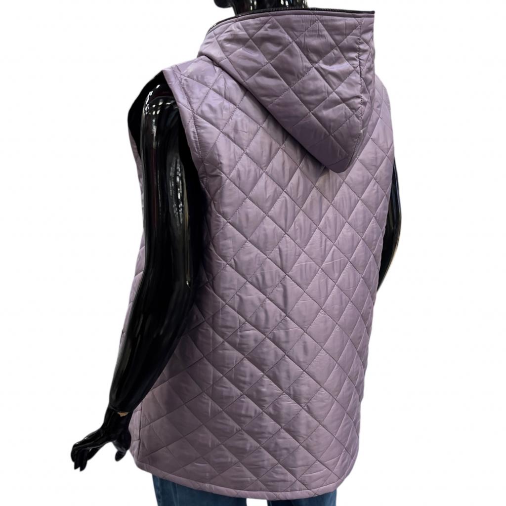 Этот стеганный жилет создан специально для теплой осенней погоды. Утеплитель из тонкого слоя синтепона гарантирует комфорт даже при низких температурах. Прямой силуэт позволяет носить его с различными видами одежды, от джинсов до юбок. Длина до середины бедра делает жилет универсальным для женщин разного роста и комплекции.