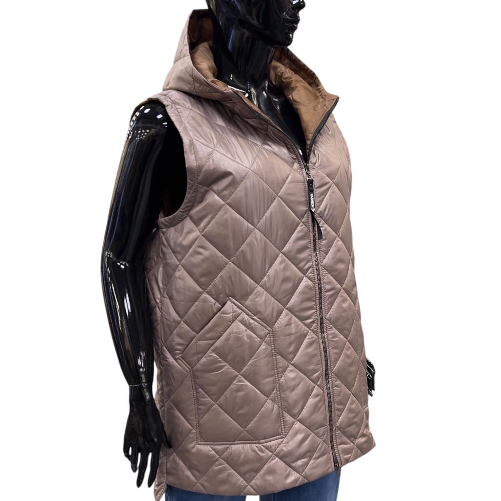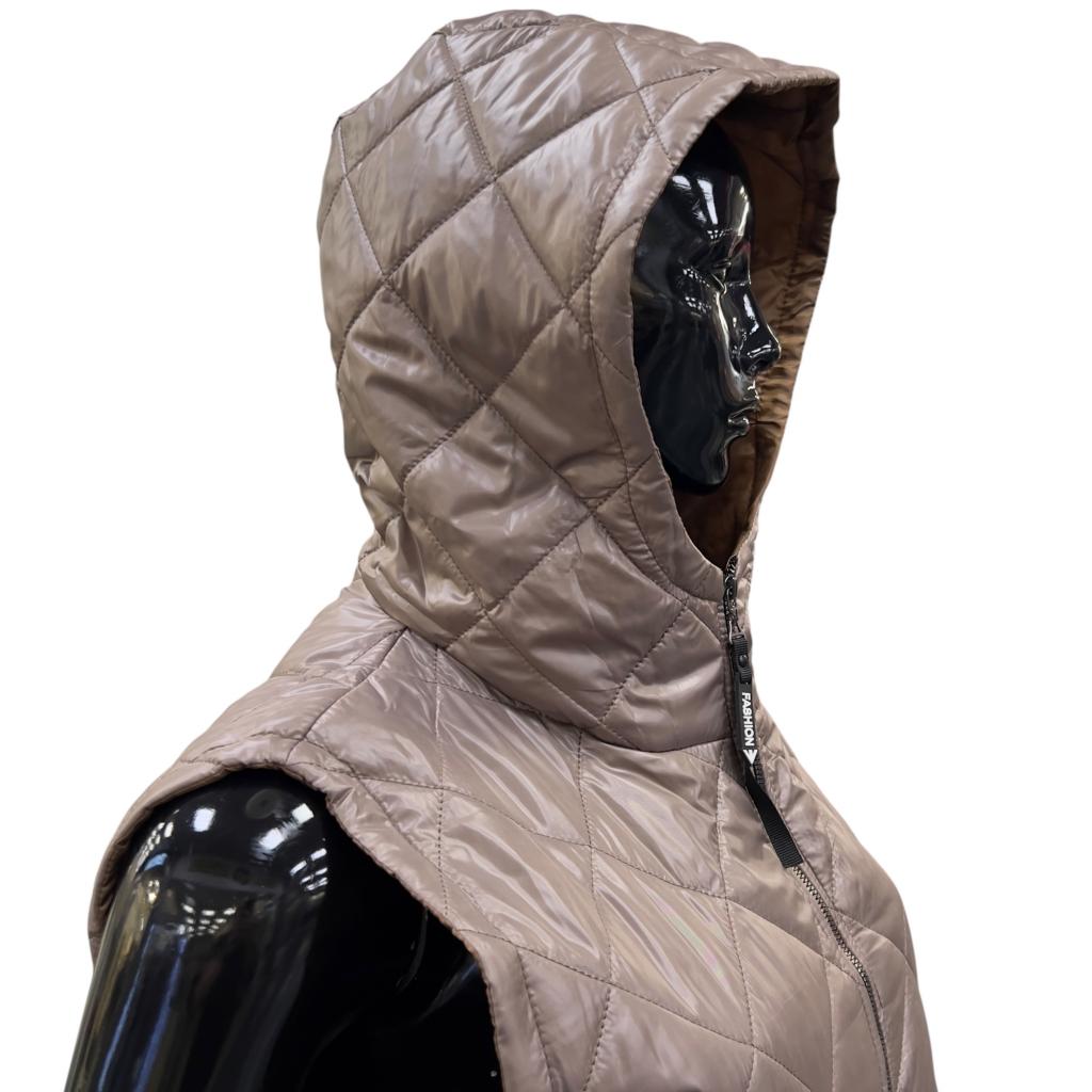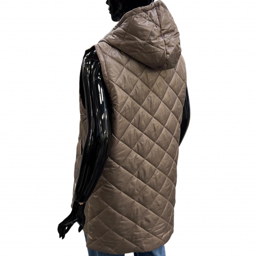 Этот стеганный жилет создан специально для теплой осенней погоды. Утеплитель из тонкого слоя синтепона гарантирует комфорт даже при низких температурах. Прямой силуэт позволяет носить его с различными видами одежды, от джинсов до юбок. Длина до середины бедра делает жилет универсальным для женщин разного роста и комплекции.