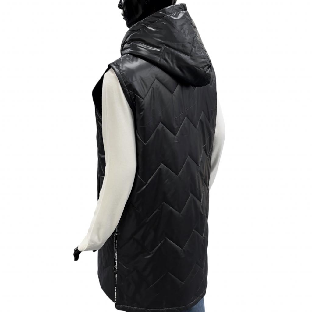 Капюшон, отсутствие рукавов, застежка на молнию позволяет быстро и легко регулировать температуру внутри куртки. Три действующих кармана обеспечивают удобное хранение мелких предметов, таких как ключи, телефон или кошелек. Черно-белый патч на грудном кармане придает жилету индивидуальность.